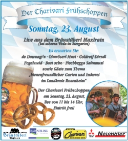 Den Charivari-Frühschoppen vom 23.8. gibt es jetzt auch wieder online zum Nachhören...