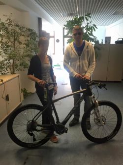 Unser Gewinner Florian hat es sich nehmen lassen, sein Mountainbike persönlich abzuholen.... trotz Wespenstich am Auge (durch Brille versteckt). Florian hat alle fünf Hütten erradelt.