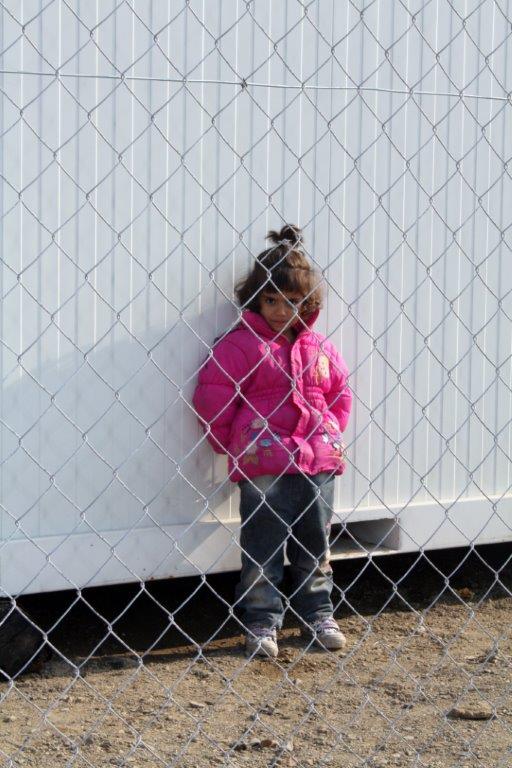 Ein kleines Mädchen aus Syrien. Zwei Meter hohe Zäune trennen es von der Außenwelt.