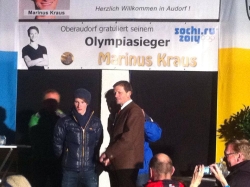 Großer Bahnhof für Marinus Kraus. Oberaudorf hat am Abend ihren Olympia-Goldmedaillen-Gewinner im Skisprung offiziell zuhause begrüßt. Auf dem vollbesetzten Rathausplatz gab es einen rauschenden Empfang. Die offiziellen Worte sprach Bürgermeister Hubert Wildgruber...